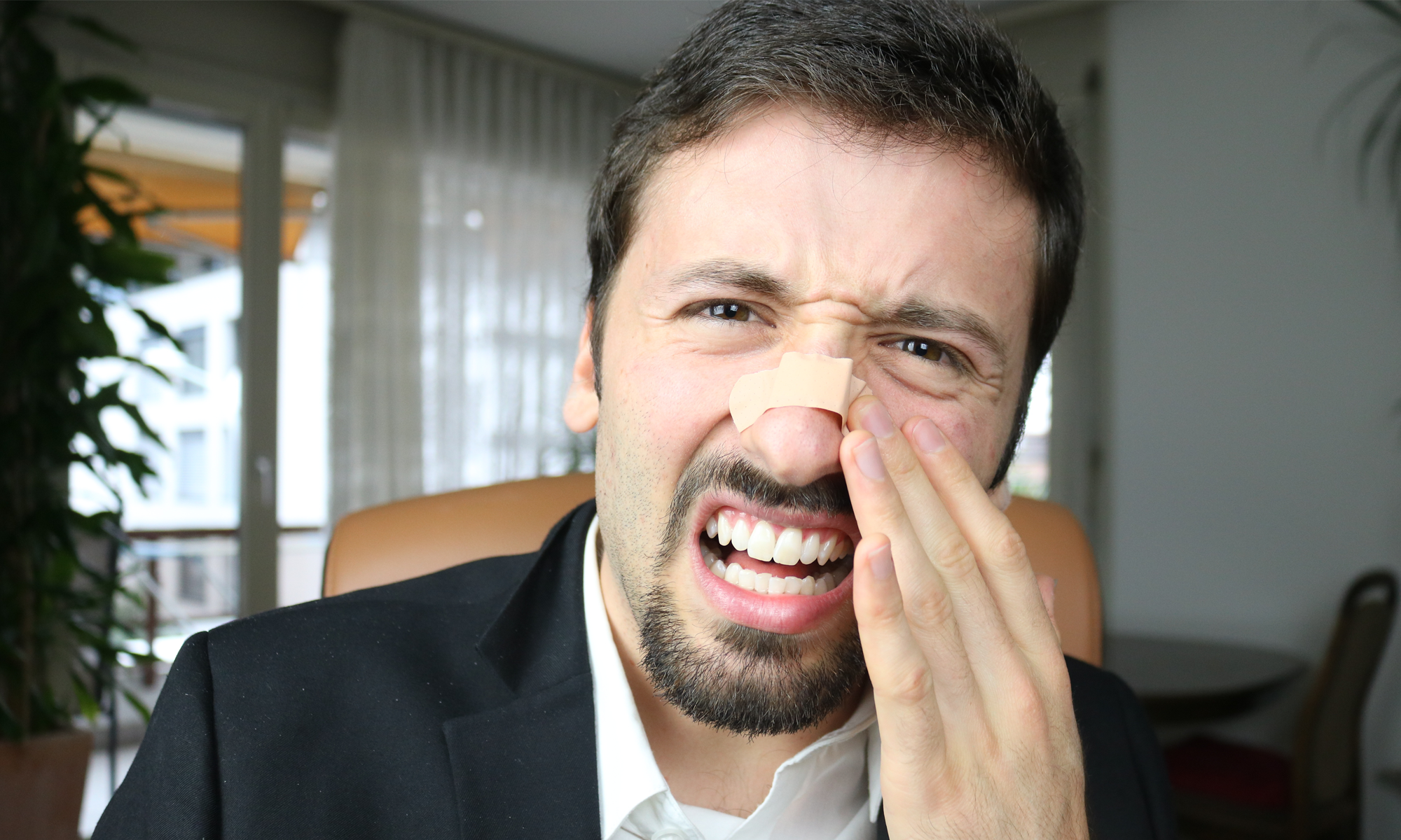 ❌ Schädigt die Haut: Nasenpflaster kleben mit einem starken Klebstoff an der Oberfläche deiner Nasenscheidewand. Beim Abziehen kommt oft auch deine Haut mit.